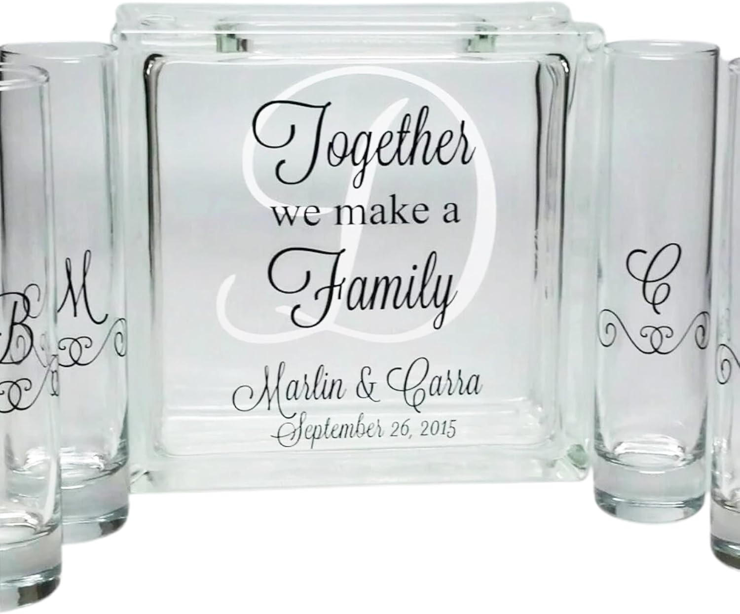 Glass Personalized Blended Family Sand Ceremony Set - Printed w Ink - Unity Sand Set for Weddings w LID, Sand - Together We Make a Family Sand Ceremony Kit for Wedding - Unity Candle Alternative