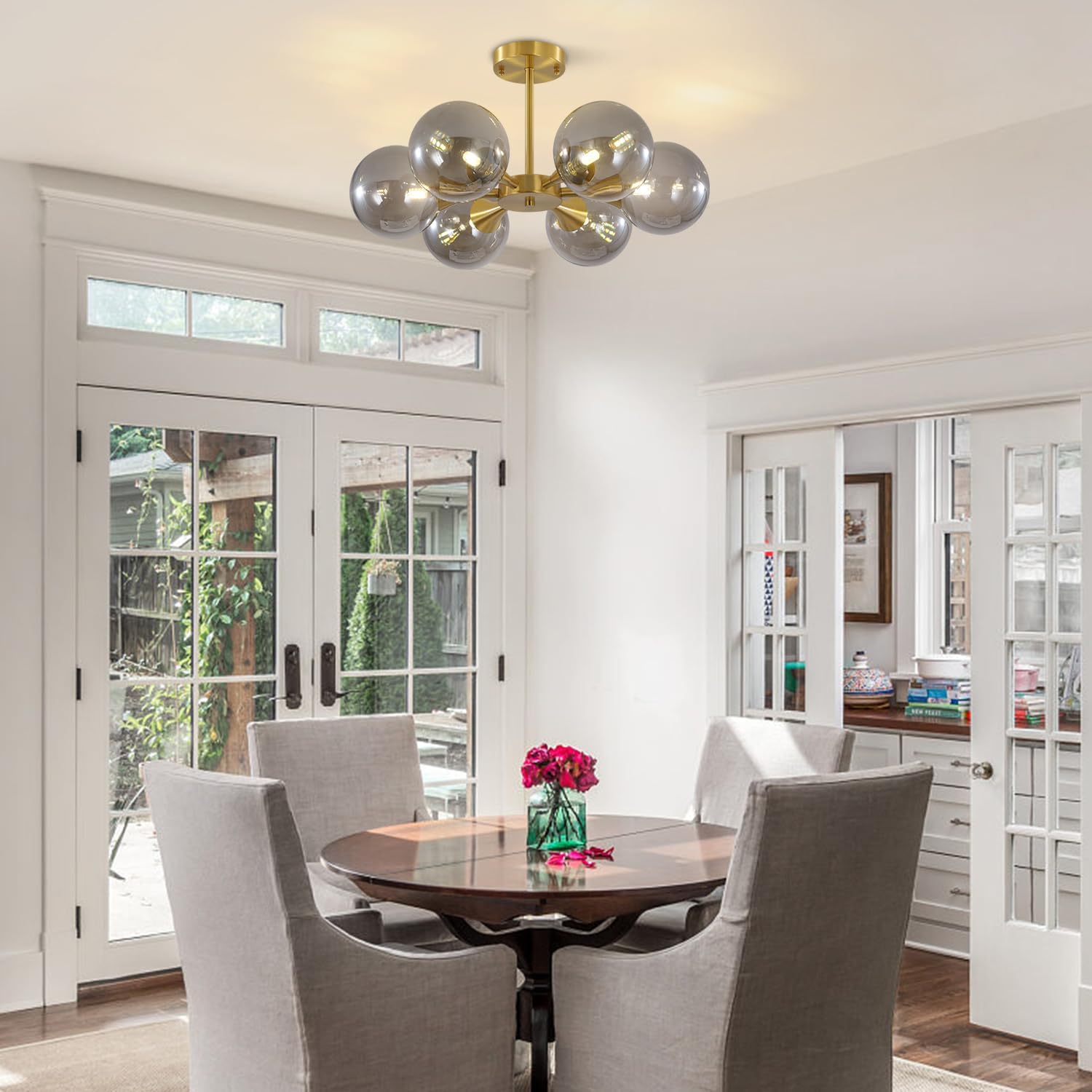 - Perfect for Low Ceilings & Easy Installation: 6-lights glass globe sputnik chandelier ceiling light removing the cumbersome design, semi flush mount can be easily embedded on most occasions, perfect fit with any ceilings, from high ceilings to low ceilings. The installation is super easy, just loosen the lock ring and finish lamp body installation, then rotate the glass globe to finish the lampshade installation