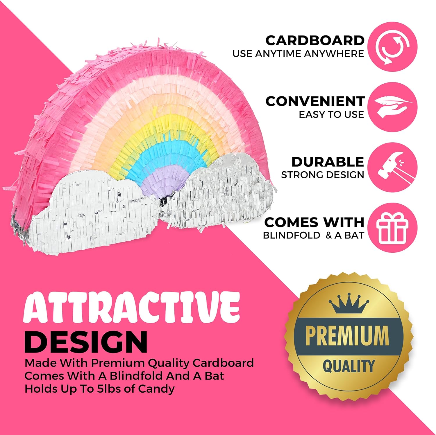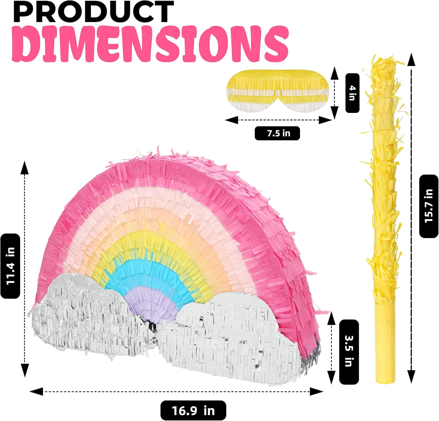 Rainbow Pinatas Bundle with a Blindfold and Bat (16.5x8.5x3.5 Inches), Rainbow Pinatas for Girls Birthday Parties Girl, Perfect for Unicorn Party, Theme Party, Decoration